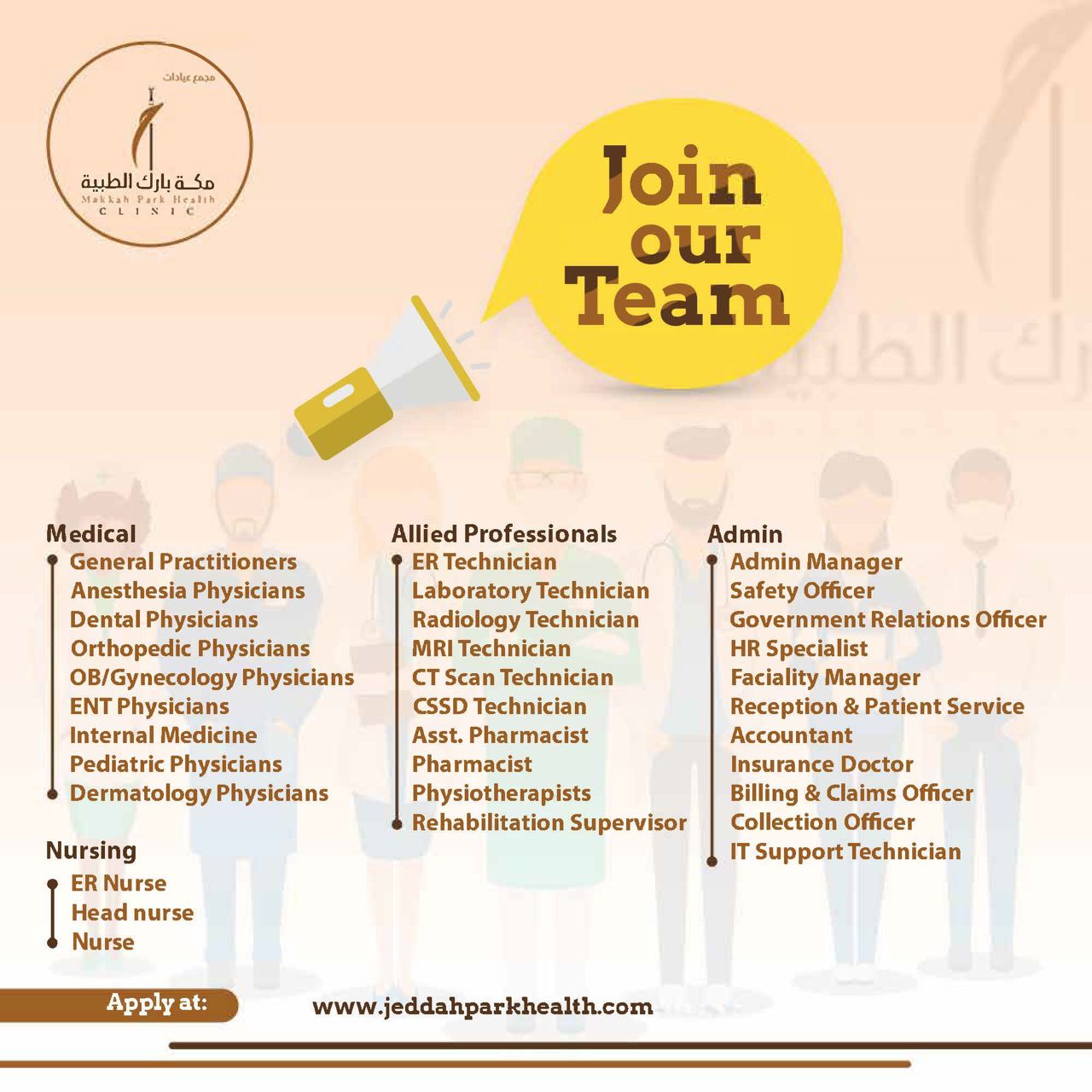 يعلن مركز جدة بارك الطبية توفر (33) وظيفة (إدارية، تقنية، هندسية، صحية، طبية) شاغرة (للرجال والنساء)، للعمل في مكة بارك الطبية وفق المسميات الوظيفية التالية: